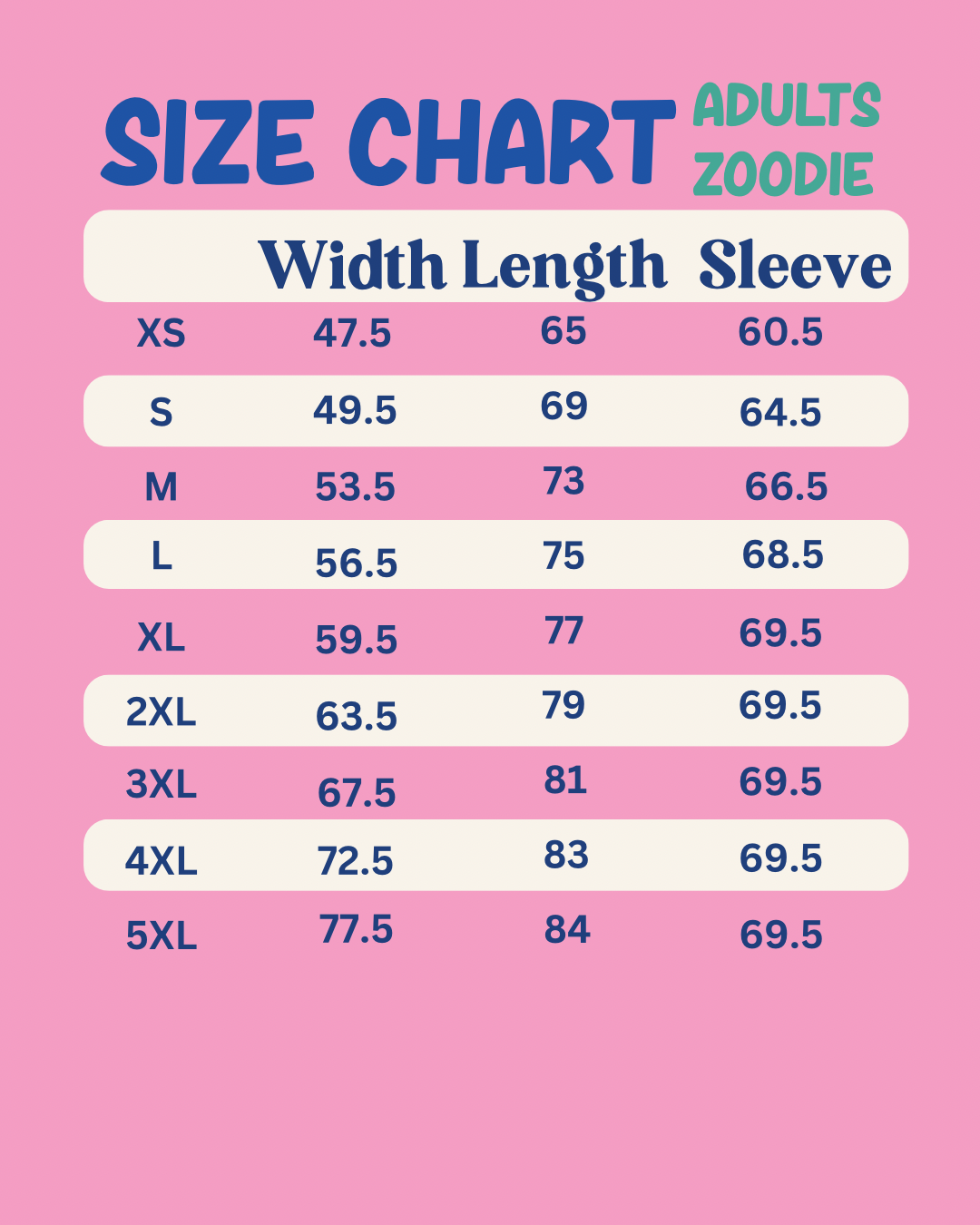 Keep your zoodie looking fresh—machine wash cold with items of similar colours and hang dry!